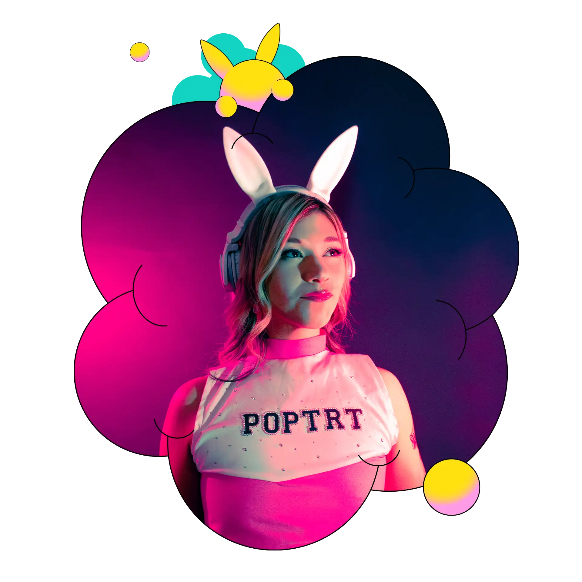 With over 7 years of experience in the events and music industry, Pøptrt has played in clubs and festivals all across Canada, captivating audiences with her unique sound and energetic performances.
